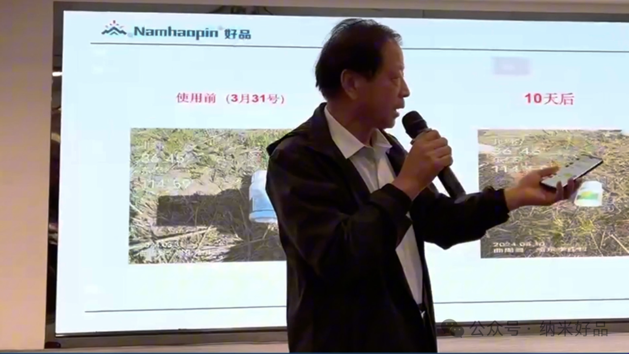 对于纳米农药使用中的优势,王经理通过现场实验的方式带客户亲身体验好品(山东)纳米农药的优点。通过好品(山东)纳米悬浮剂产品和常规悬浮剂产品入水的形状以及丁达尔效应等让客户亲眼见到了好品(山东)纳米产品的神奇效果,围观客户目不转睛,现场讨论声此起彼伏,惊叹与赞赏交织,真切感受到纳米农药在分散性、稳定性上的显著优势,也对其在田间应用的卓越表现充满期待。