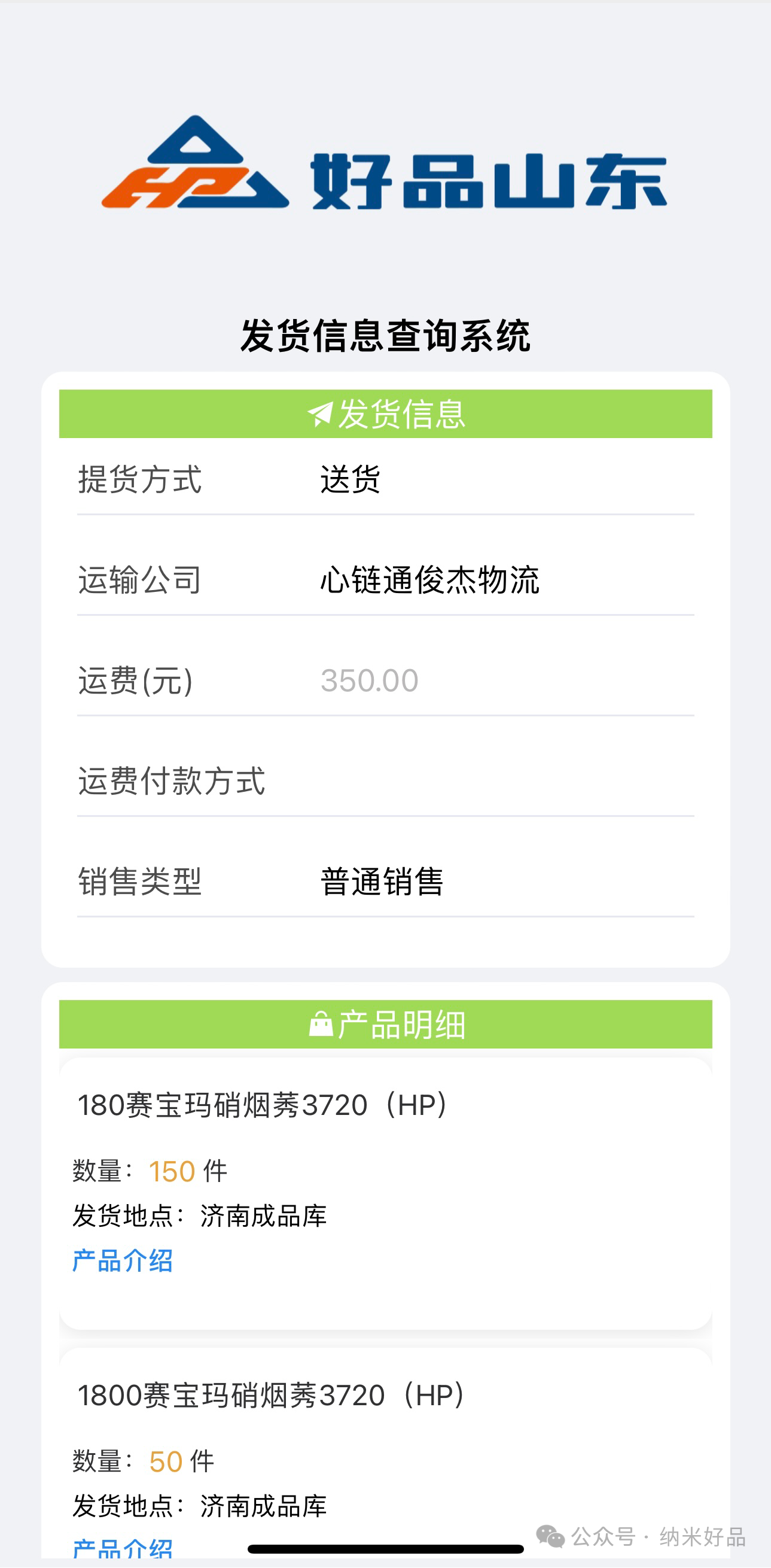 请收到新版短信发货通知后放心打开链接,此为好品山东正规、安全发货通知!
